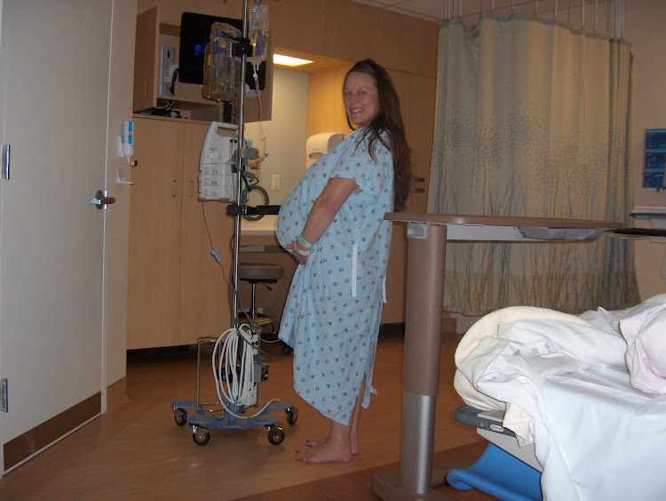 We made our way to Kaiser around 9:15 and I knew this was it. Besides the contractions, my body gave me a few "sure signs" while at the mall that she was coming! We get to Kaiser and of course I'm standing there waiting to get all checked in and I can't feel a dang contraction and I am in no pain. I feel like everyone sitting waiting to be checked in was thinking I was full of crap when I told the nurse that I was having painful contractions and other "sure signs" of labor.